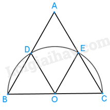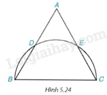 Cho tam giác đều ABC có AB = \({\rm{2}}\sqrt 3 \)cm. Nửa đường tròn đường kính BC cắt hai cạnh AB và AC lần lượt tại D và E (khác B và C) (H.5.24).