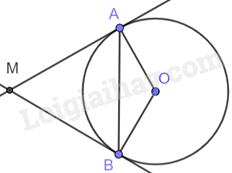 Vì MA và MB là tiếp tuyến của (O) nên \(MA \bot AO,MB \bot BO\), suy ra \(\widehat {MAO} = \widehat {MBO} = {90^o}\).