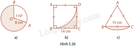 Tính chu vi và diện tích phần được tô màu trong mỗi trường hợp ở Hình 5.56. Làm tròn kết quả đến hàng phần mười.