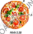 Trong Hình 5.58, bánh pizza có dạng hình tròn tâm O được cắt thành sáu phần bằng nhau. Góc AOB có số đo bằng bao nhiêu?