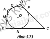 Trong Hình 5.73, bốn cạnh của tứ giác ABCD tiếp xúc với đường tròn (O). Chứng minh rằng \(AD + BC = AB + CD\).