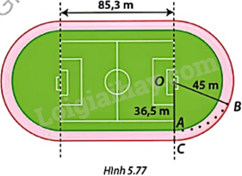 Trong Hình 5.77, mỗi làn chạy của sân vận động được thiết kế gồm hai phần là đường chạy thẳng và hai phần có dạng nửa đường tròn. Trong một cuộc thi điền kinh, vận động viên ở làn trong cùng xuất phát từ vị trí điểm A, chạy ngược chiều kim đồng hồ đúng một vòng và về đích ở điểm A.