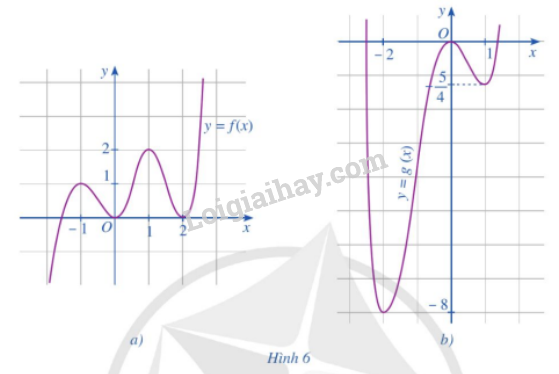 Cho hai hàm số \(y = f\left( x \right),y = g\left( x \right)\) có đồ thị hàm số lần lượt ở Hình 6a, Hình 6b. Nêu khoảng đồng biến, nghịch biến và điểm cực trị của mỗi hàm số đó.
