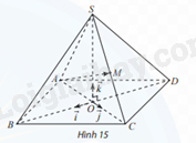 Trong không gian Oxyz, cho hình chóp S.ABCD có đáy ABCD là hình thoi cạnh bằng 5, giao điểm hai đường chéo AC và BD trùng với gốc O. Các vectơ \(\overrightarrow {OB} ,\overrightarrow {OC} ,\overrightarrow {OS} \)¬ lần lượt cùng hướng với \(\overrightarrow i \), \(\overrightarrow j \), \(\overrightarrow k \) và OA = OS = 4 (Hình 15). Tìm toạ độ các vectơ \(\overrightarrow {AB} ,\overrightarrow {AC} ,\overrightarrow {AS} \) và \(\overrightarrow {AM} \)¬ ¬với M là trung điểm của cạnh SC.