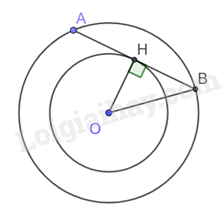 Cho hai đường tròn đồng tâm (O; R) và (O; \(\frac{{R\sqrt 3 }}{2}\)). Một tiếp tuyến của đường tròn nhỏ cắt đường tròn lớn tại hai điểm A và B. Tính số đo cung AB.