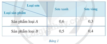 Người ta cần sơn hai loại sản phẩm A, B bằng hai loại sơn: sơn xanh, sơn vàng. Lượng sơn để sơn mỗi loại sản phẩm đó được cho ở Bảng 1 (đơn vị: kg/1 sản phẩm).