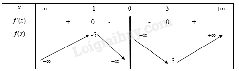 Xét \(y’ = 0\)\( \Rightarrow \left[ \begin{array}{l}x = 3\\x =  – 1\end{array} \right.\)