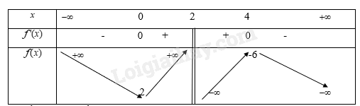 Xét \(y’ = 0\)\( \Rightarrow \left[ \begin{array}{l}x = 0\\x = 4\end{array} \right.\)