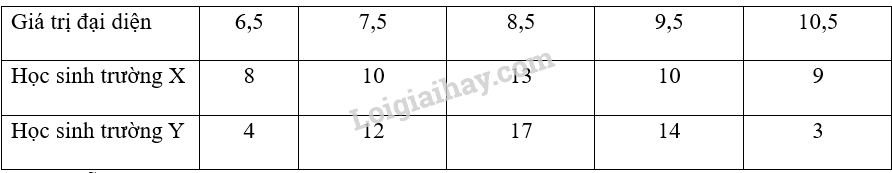 Số trung bình: \(\overline {{x_Y}}  = \frac{{4.6,5 + 12.7,5 + 17.8,5 + 14.9,5 + 3.10,5}}{{50}} = 8,5\)