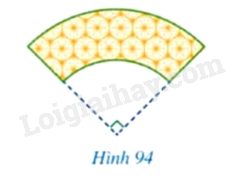 Hình 94 mô tả mảnh vải có dạng một phần tư hình vành khuyên, trong đó hình vành khuyên giới hạn bởi hai đường tròn cùng tâm và có các bán kính lần lượt là 3dm và 5dm. Diện tích của mảnh vải đó bằng bao nhiêu decimét vuông (làm tròn kết quả đến hàng phần mười)?