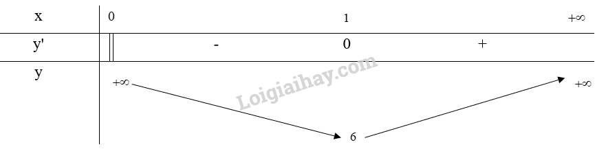 Từ bảng biến thiên, ta thấy \(\mathop {\min }\limits_D y = y(1) = 6\)