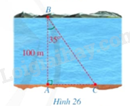 Hình 26 minh hoạ một phần con sông có bề rộng \(AB = 100m\).Một chiếc thuyền đi thẳng từ vị trí \(B\) bên này bờ sông đến vị trí \(C\) bên kia bờ sông. Tính quãng đường \(BC\) (làm tròn kết quả đến hàng phần mười của mét), biết \(\widehat {ABC} = 35^\circ \).