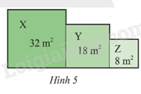 Một vườn hoa gồm ba thửa hình vuông X, Y, Z lần lượt có diện tích như Hình 5. Tính chu vi của vườn hoa đó.