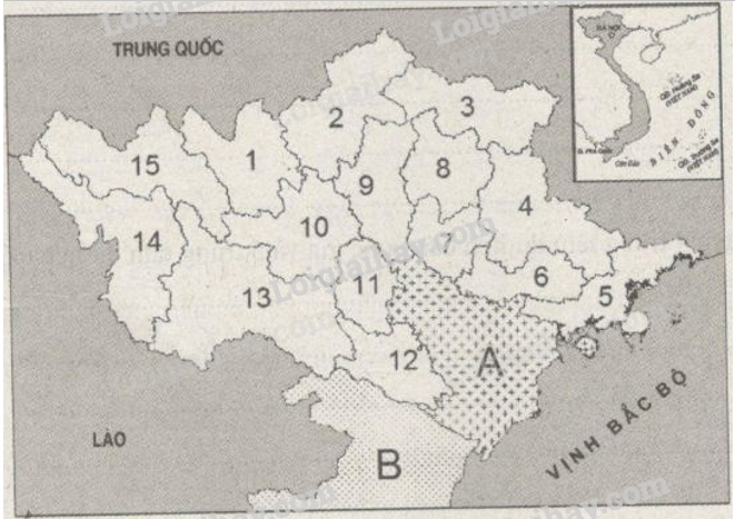 Giải câu 1 trang 104 sách bài tập Địa lí 12, Quan sát lược đồ vùng Trung du và miền núi Bắc Bộ dưới đây, hãy điền: -Tên các tỉnh được đánh số trong lược đồ: