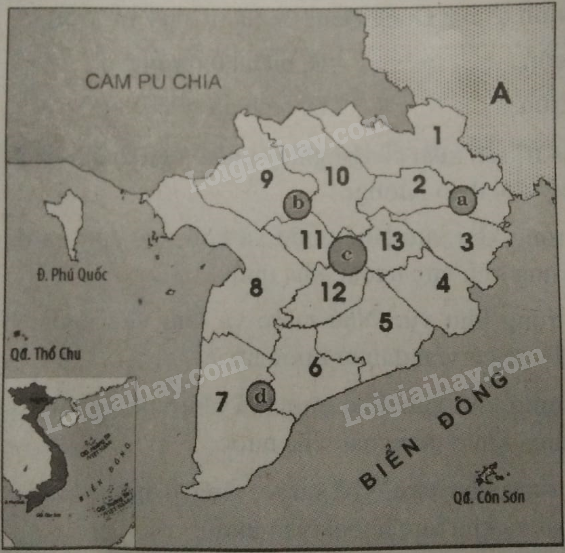– Tên các vùng tiếp giáp A trong lược đồ: Đồng bằng sông Cửu Long, Biển Đông, Campuchia.