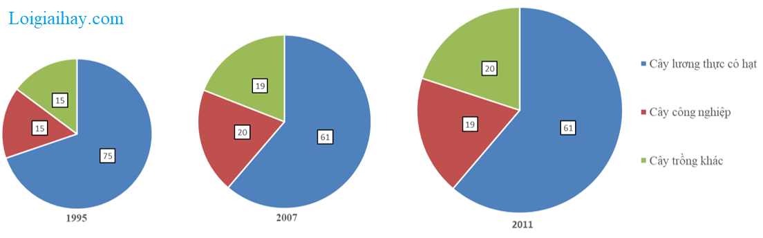 – Cơ cấu diện tích gieo trồng phân theo các nhóm cây ở nước ta năm 1995- 2011 có sự thay đổi: