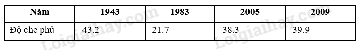 – Độ che phủ rừng của nước ta từ 1943-1983 giảm mạnh (21.5%)
