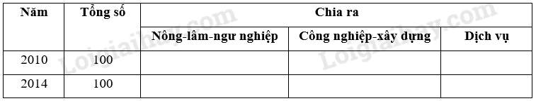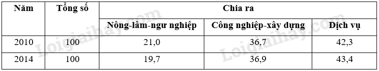 Cơ cấu GDP nước ta phân theo khu vực kinh tế năm 2010 và năm 2014