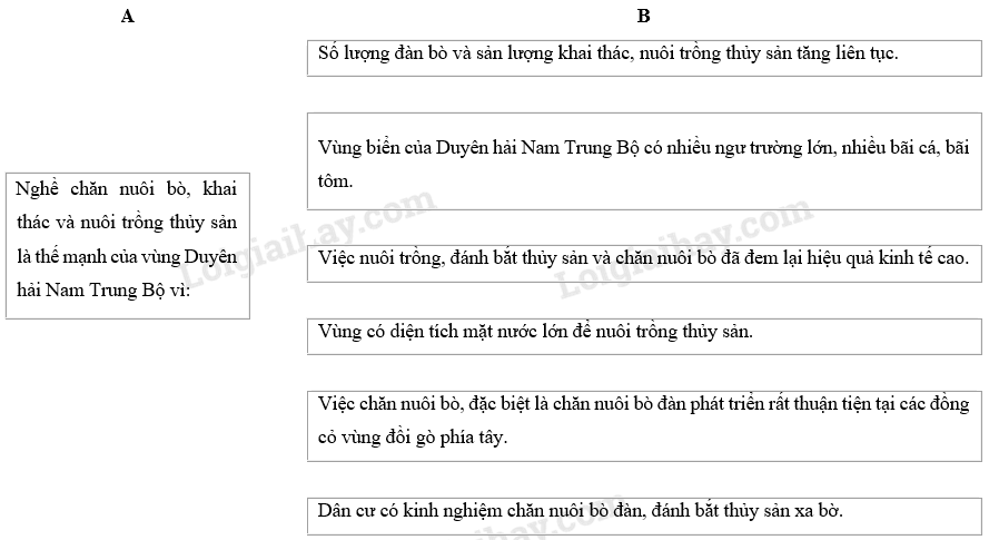 Giải câu 1 trang 63 sách bài tập Địa lí 9, Hãy nối ô chữ ở cột A với những ô chữ thích hợp ở cột B để được một sơ đồ đúng.