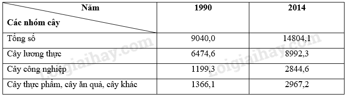 DIỆN TÍCH GIEO TRỒNG PHÂN THEO NHÓM CÂY CỦA NƯỚC TA NĂM 1990 VÀ 2014