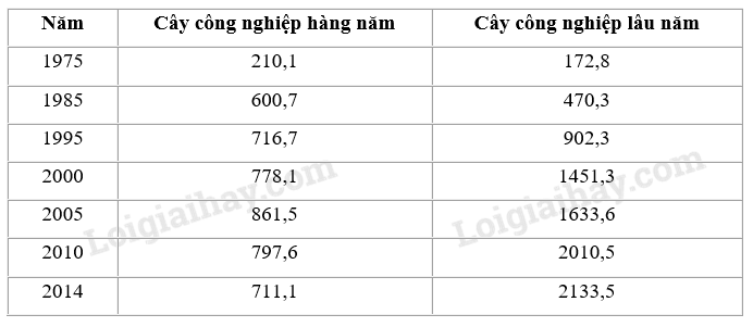 DIỆN TÍCH GIEO TRỒNG CÂY CÔNG NGHIỆP LÂU NĂM VÀ HÀNG NĂM Ở NƯỚC TA GIAI ĐOẠN 1975-2014 (Đơn vị: nghìn ha)