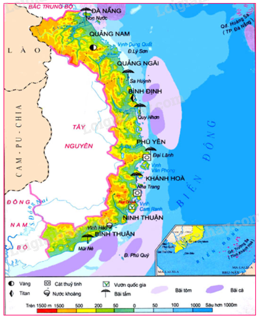 Giải câu 1 trang 97 sách bài tập Địa lí 9, Các tỉnh, thành phố thuộc vùng Duyên hải Nam Trung Bộ.