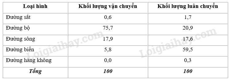 a) Vẽ biểu đồ thể hiện cơ cấu khối lượng vận chuyển và luân chuyển hàng hóa phân theo loại hình vận tải của nước ta năm 2013.