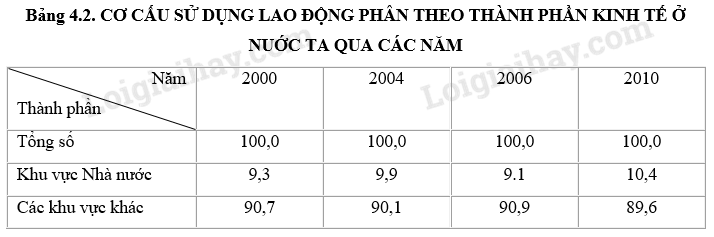 Nhận xét về sự thay đổi trong cơ cấu sử dụng lao động phân theo thành phần kinh tế ở nước ta và ý nghĩa của sự thay đổi đó.