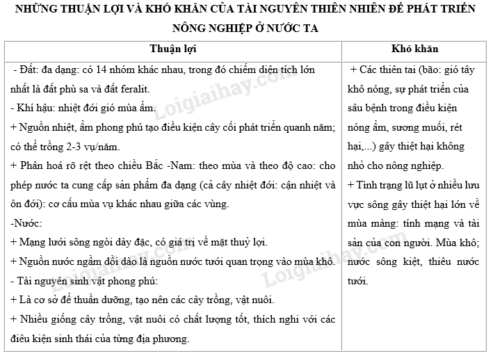 Giải câu 2 trang 22 SBT địa 9, Dựa vào kiến thức đã học, hoàn thành bảng sau: