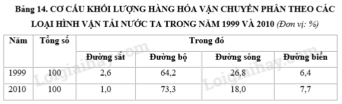 b) Nhận xét sự thay đổi tỉ trọng của các ngành giao thông vận tải.