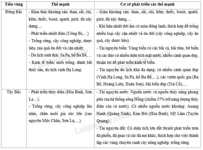 Giải câu 2 trang 42 SBT địa 9, Dựa vào kiến thức đã học, hoàn thành bảng sau: