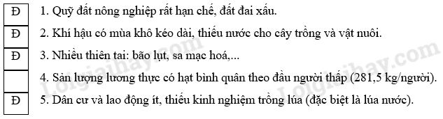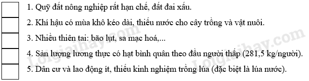 Những khó khăn trong sản xuất nông nghiệp của vùng Duyên hải Nam Trung Bộ là: