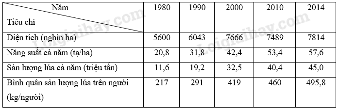 – Diện tích lúa của nước ta tăng 2214 nghìn ha, gấp 1,4 lần.