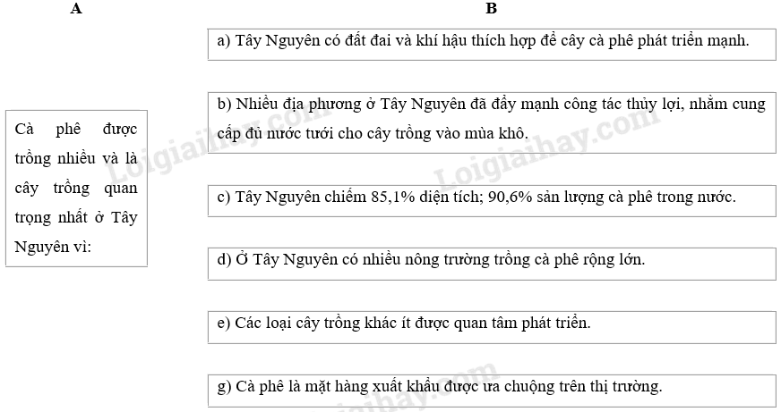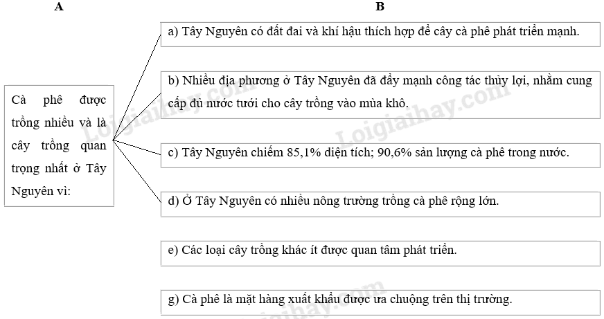 Giải câu 2 trang 70 sách bài tập Địa lí 9, Nối chữ ở cột A với những chữ thích hợp ở cột B sao cho phù hợp