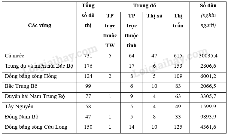 -> Sự phân bố đô thị và số dân đô thị không giống nhau giữa các vùng.
