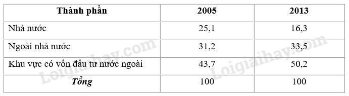 Cơ cấu giá trị sản xuất công nghiệp phân theo thành phần kinh tế nước ta năm 2005 đến năm 2013 có sự chuyển dịch:
