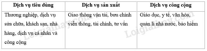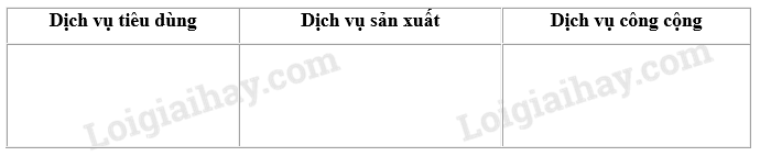 Hãy xếp các ngành dịch vụ đã cho vào bảng sau sao cho đúng.