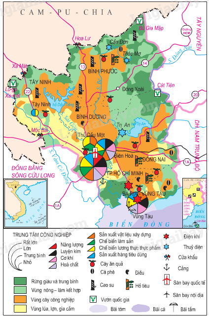 – TP. Hồ Chí Minh: Năng lượng, luyện kim, cơ khí, hóa chất, sản xuất vật liệu xây dựng, chế biến lâm sản, chế biến lương thực-thực phẩm., sản xuất hàng tiêu dùng.