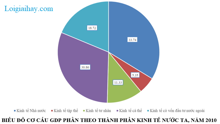 a) Vẽ biểu đồ cơ cấu GDP phân theo thành phần kinh tế nước ta, năm 2010.