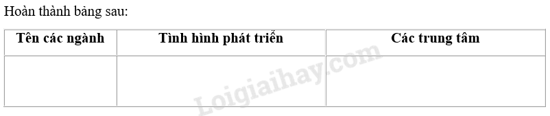 Giải câu 5 trang 33 SBT địa 9, Hoàn thành bảng sau: