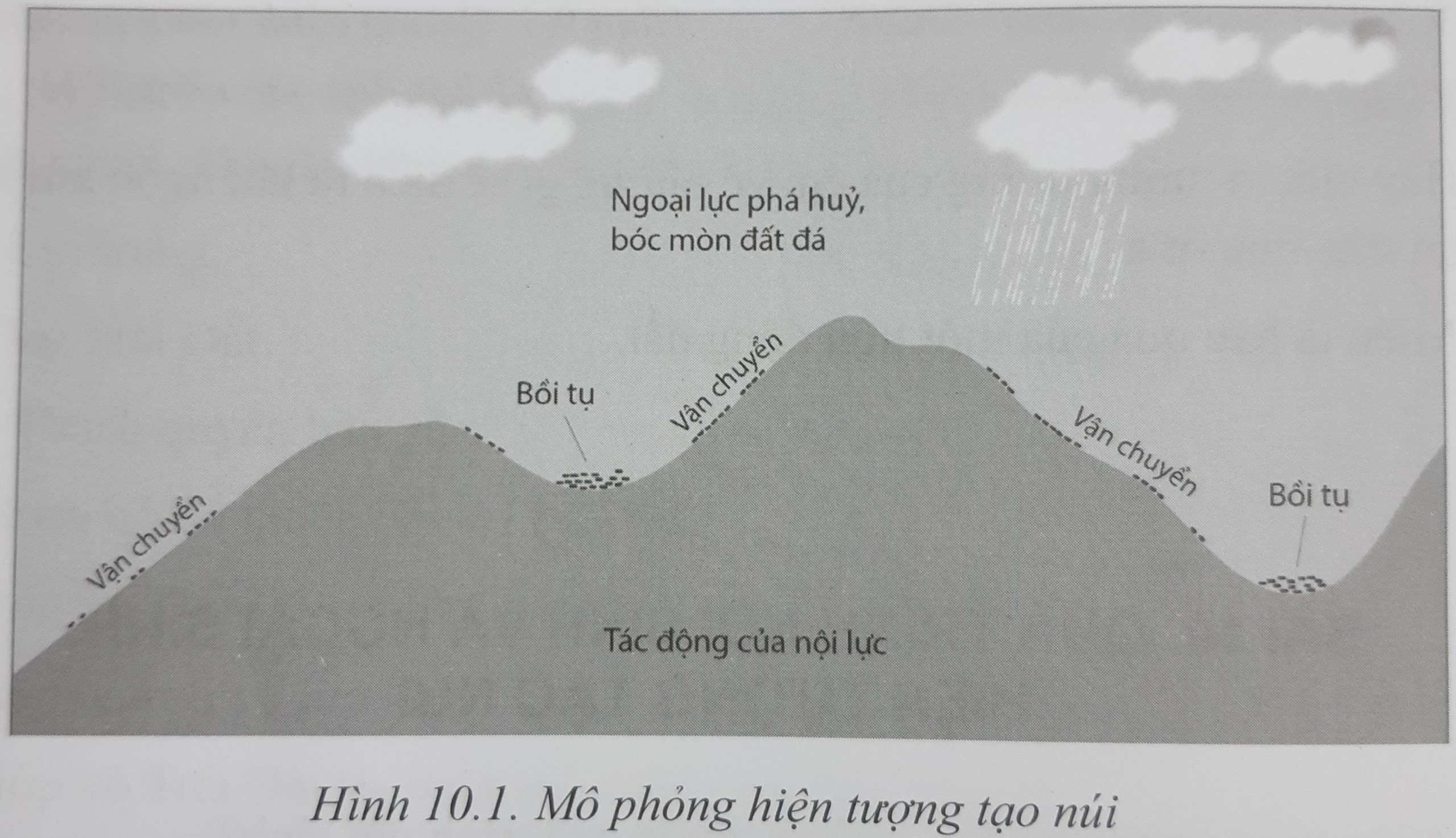 Đọc đoạn văn sau và quan sát hình 10.1: Hãy trình bày sự hiểu biết của em về tác động của quá trình nội sinh và quá trình ngoại sinh trong hiện tượng tạo núi.