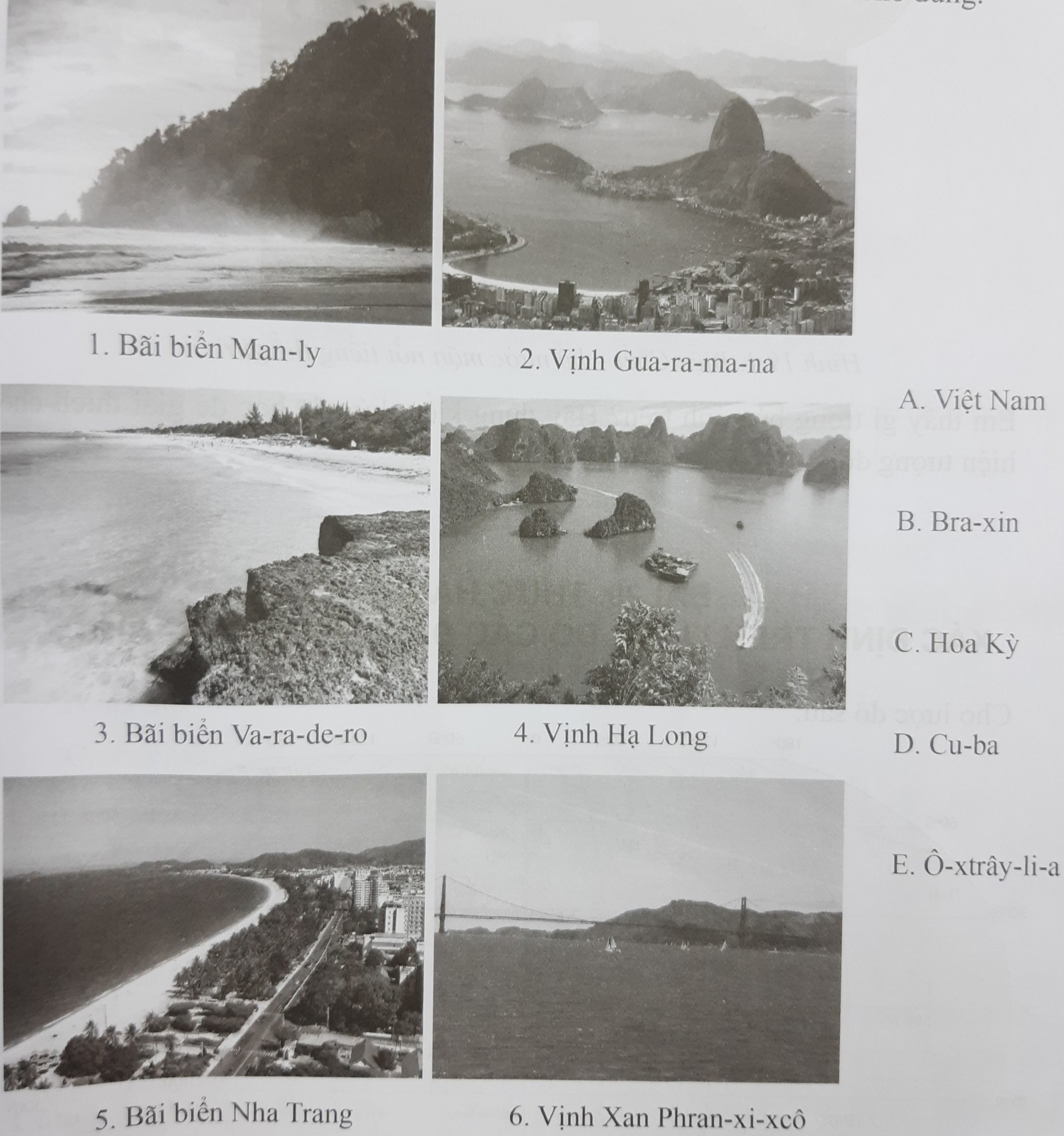 Ghép tên các ảnh bãi biển hay vịnh biển với tên nước sao cho đúng.