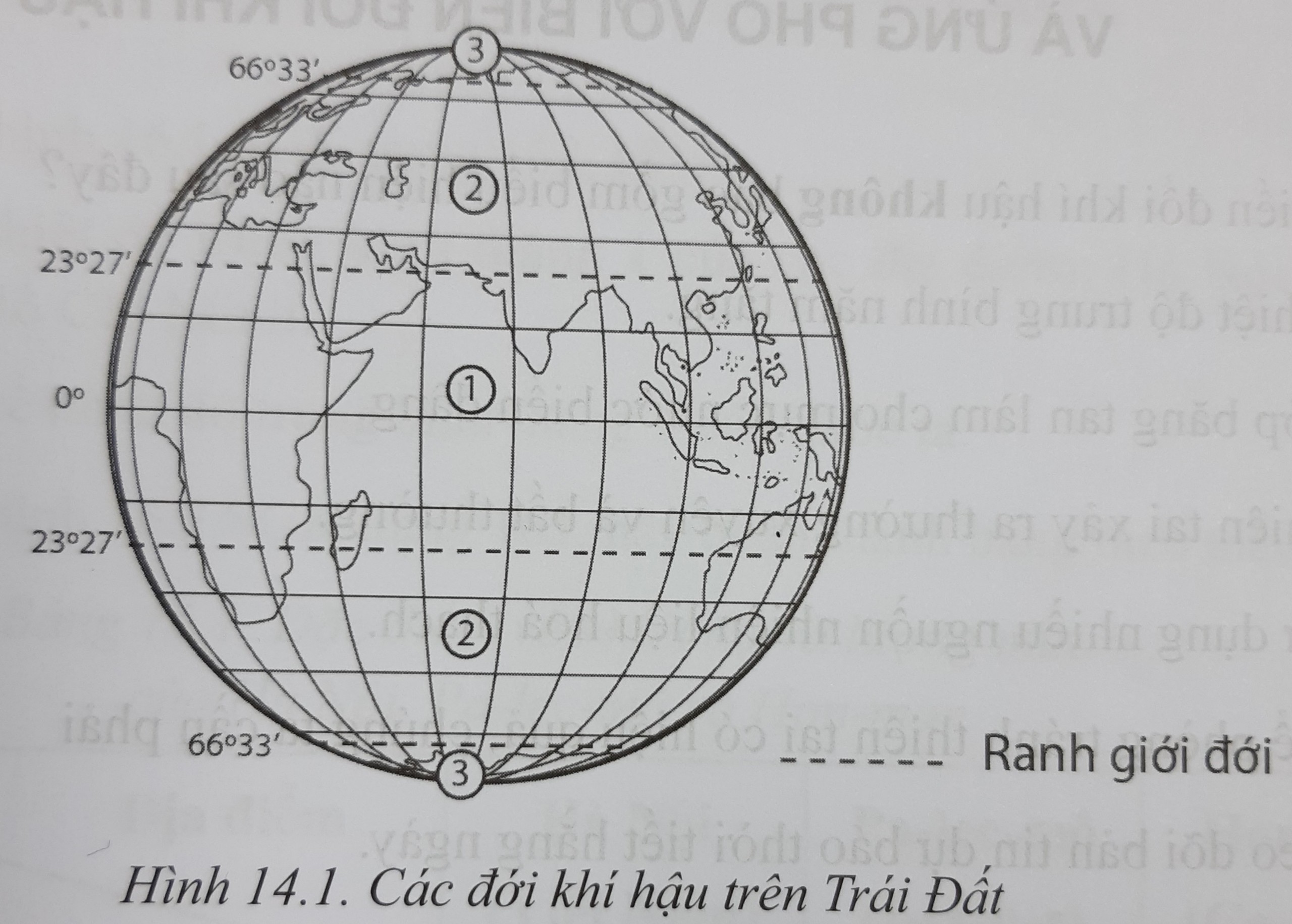 Hình 14.5. Các đới khí hậu trên Trái Đất