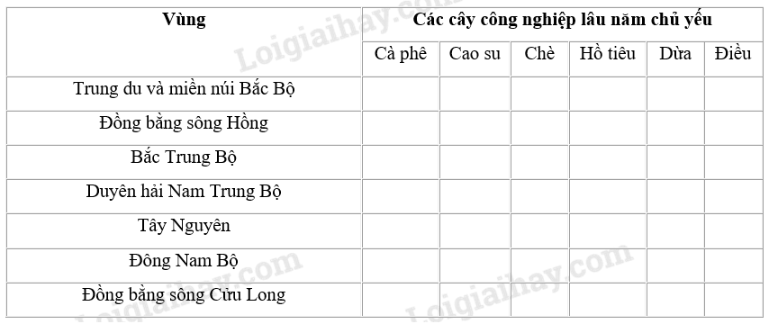 – Cà phê: tập trung nhiều ở Tây Nguyên, Đông Nam Bộ, Bắc trung Bộ.