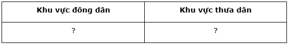 a) Hãy sắp xếp các địa điểm trên tương ứng với khu vực đông dân và thưa dân vào bảng theo mẫu sau:
