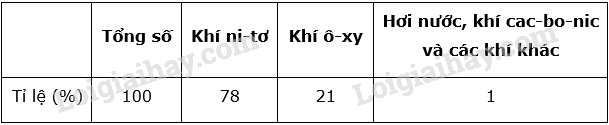Bảng 13.1. Tỉ lệ các thành phần của không khí