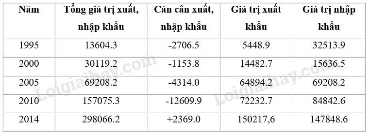 – Giai đoạn 1995 – 2014 giá trị xuất – nhập khẩu liên tục tăng và tăng thêm 143 471 triệu USD. Trong đó giá trị xuất khẩu và nhập khẩu đều tăng (lần lượt là 144768,7 triệu USD và 115334,7 triệu USD).