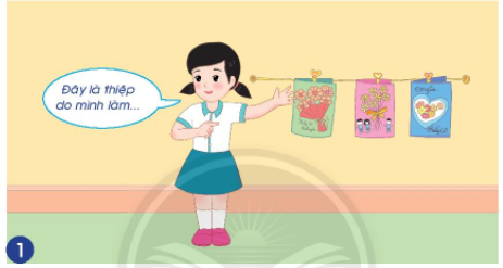 Em sử dụng tấm thiệp mà mình đã làm những tiết trước để nói lời giới thiệu.