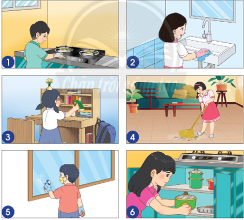 + Hình 4: quét dọn nhà cửa.
