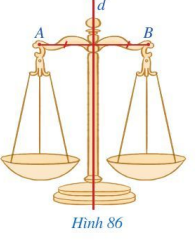 Hình 86 minh họa chiếc cân thăng bằng và gợi nên hình ảnh đoạn thẳng AB, đường thẳng d.